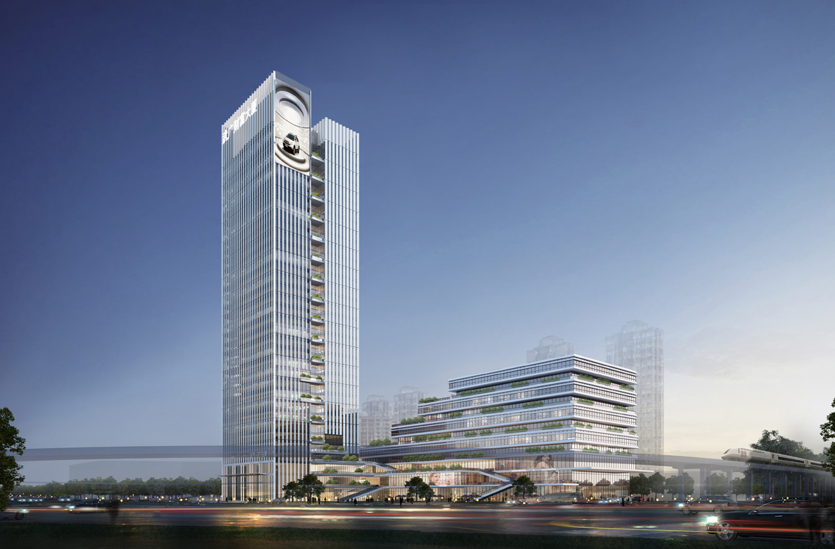 项目概况:本工程为株洲市武广财富大厦项目(原株洲市武广地标项目),工程建设地点位于湖南省株洲市,为写字楼+酒店+商业用房组合形式,包含1栋3F+7F国际五星级酒店,1栋3F+32F的5A甲级写字楼,3层地下车库。项目总建筑面积约为161330.88㎡,其中地下部分建筑面积约为59495㎡,地上部分A栋商业、国际五星级酒店约为37972.01㎡,地上部分B栋5A甲级写字楼约为63863.87㎡。A栋建筑物高度50.50m,商业及酒店配套(裙楼)首层层高8米,二层层高6.6米,三层层高5.1米,酒店大堂通高14.60米,酒店客房(塔楼)标准层高3.9米。B栋建筑物高168.00m,5A甲级写字楼标准层高4.1米。