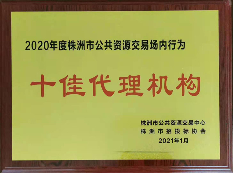 2020年株洲市十佳代理机构