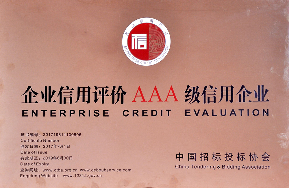 全国建设工程招标代理企业AAA级诚信等级