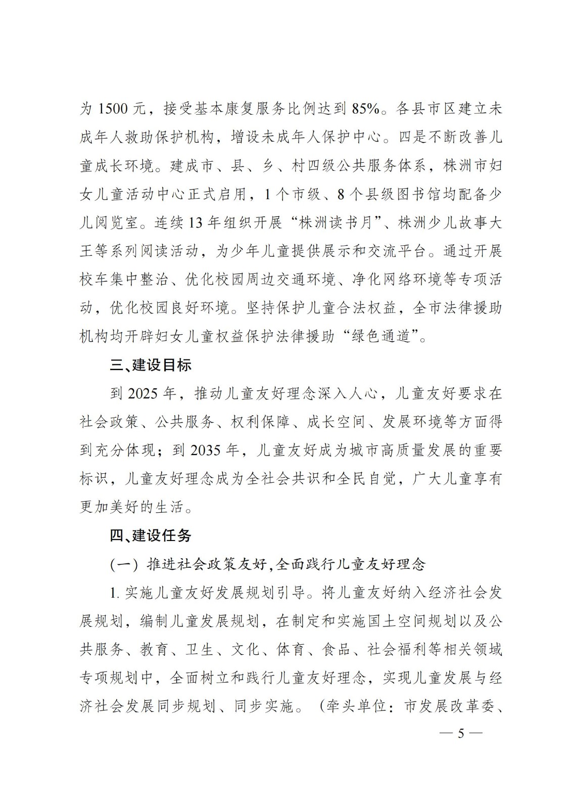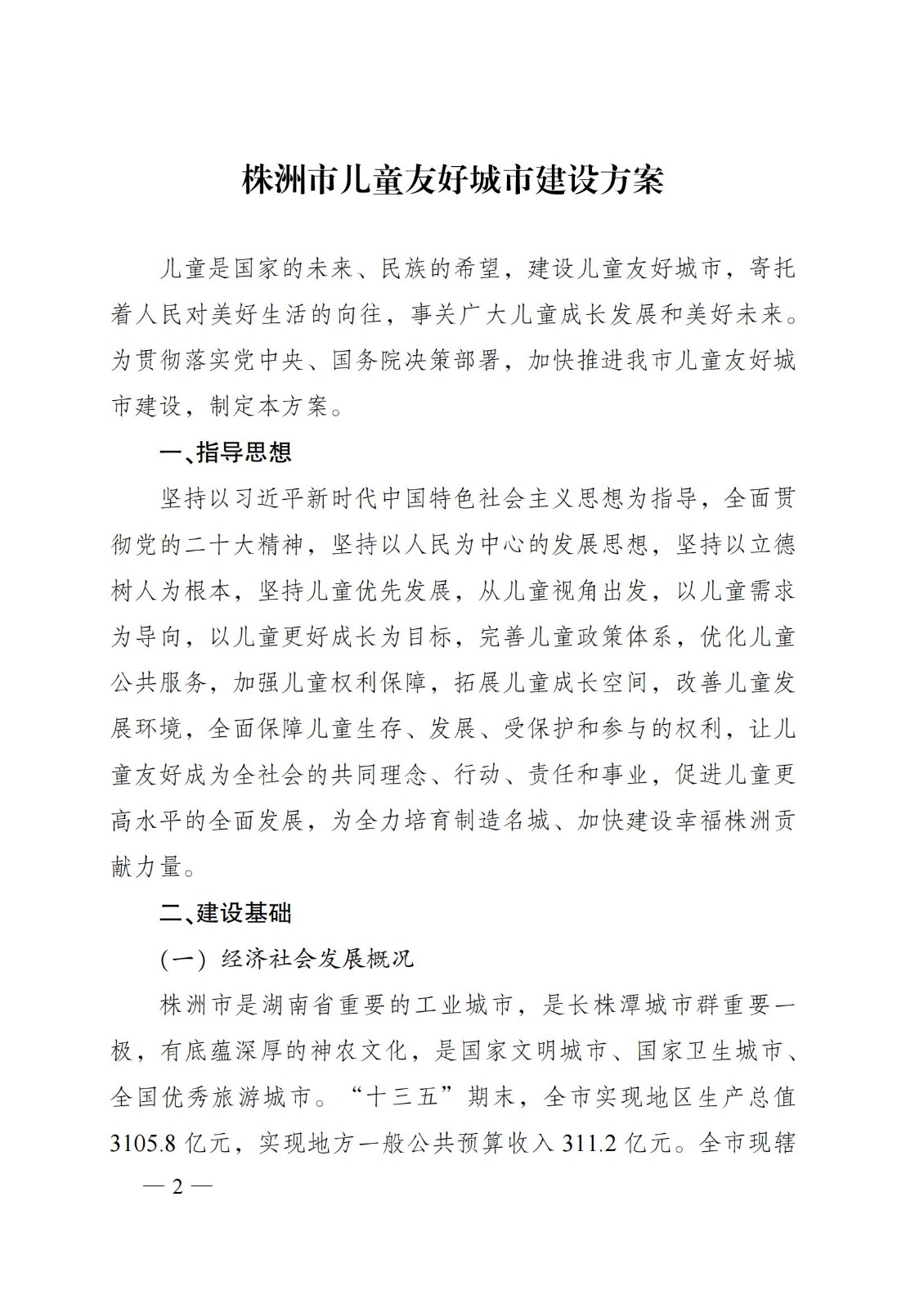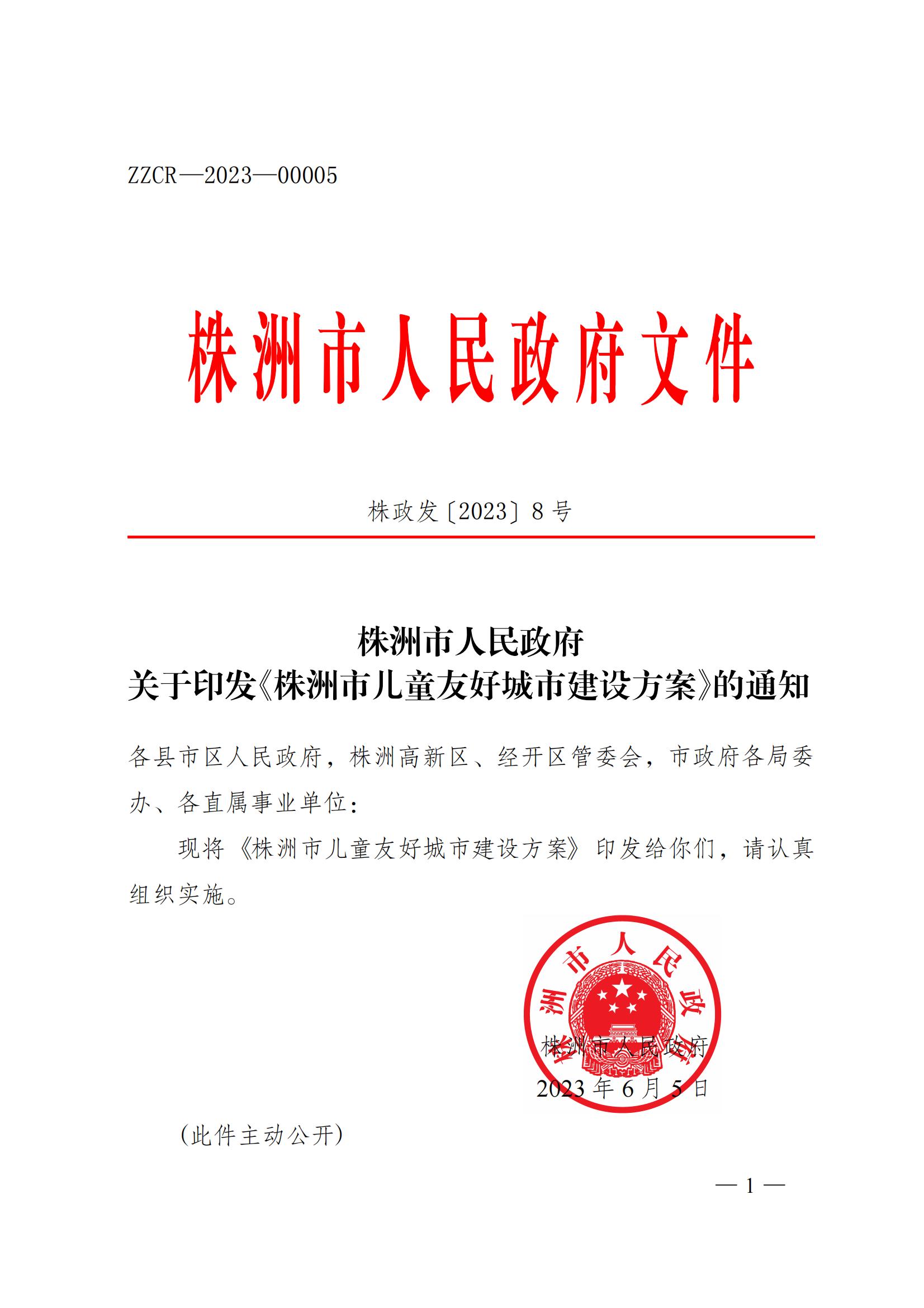 株洲市人民政府关于印发《株洲市儿童友好城市建设方案》的通知